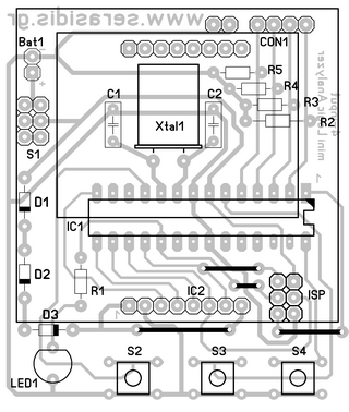 The operating voltage of the circuit is 4.8V DC from 4x1.2V rechargeable batteries. Switch on the S1 to power on the electronic circuit. After the initial screens on LCD you will see a message that the AVR waits for a signal change on input pins. The AVR has 4 external pull-down resistors 33kÙ (R2-R5) avoiding any unnecessary trigger on any input pin because of an external electromagnetic field or by touching accidentally your hand on any input pin. The Nokia 3310/5110 LCD works from 3.3 - 5V power supply. The problem is that the LCD's backlight works with Maximum 3.3V DC. So I put diodes D1-D3 to decrease the voltage from 4.8V to 4.8-(0.7*3)=2.7V that is the required power supply of Nokia's LCD. When you power ON the circuit, the LED1 is turnedOFF. After the first trigger on any of 4 input pins, this LED is turnedON and the AVR starts capturing the data in to its internal RAM buffer (290 samples).